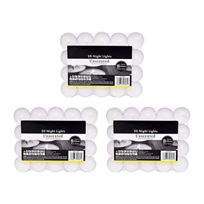8 Hour Long Burn Night Light Candles Unscented Tealights Various Pack Sizes of Tea Lights Home Decorative and Soothing Accessories (Pack 3 (60 tealights))