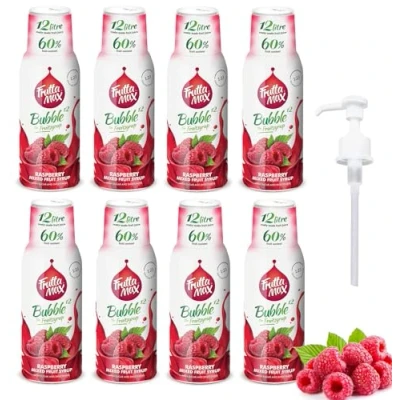 🍓 DELIVERING: 8 x 500ml bottle + syrup pump for gift - Premium Raspberry Syrup – Made with 60% Real Fruit - Enjoy a naturally sweet and fruity experience with Frutta Max! Our premium Raspberry fruit syrup is made with 60% real fruit content, offering a rich flavor perfect for sodas, cocktails, milkshakes, and even desserts like ice cream and yogurt. 🍸 Make Up to 96 Liters – Easy 1:23 Mixing Ratio Each 500ml bottle creates up to 12L of refreshing drinks! Ideal for home use, parties, and soda machines. ⚙ How to Mix (Step-by-Step Instructions): 1. Fill a bottle with still or sparkling water. 2. Use the dosing cap to measure syrup – lines for 0.25L / 0.5L / 1L / 1.5L water. 3. Tilt the bottle and slowly pour in the syrup. 4. Close, shake gently, and enjoy! 🍹 Multi-Purpose & Delicious - Perfect for cocktails, fizzy drinks, milkshakes, punches. Tasty syrup for ice cream, yoghurt, cottage cheese (quark). Use as a natural topping or mixer for your favorite snacks and recipes ♻️ Eco-Friendly & Health-Conscious Choice - ✔ No deposit, no returns – less plastic waste. ✔ Low-calorie, sugar-conscious formula – suitable for soda makers & sparkling water machines. ✔ Vegan & free from artificial colors and preservatives 💬 Taste the Difference - Treat yourself to bold Raspberry flavor with Frutta Max – the smarter way to enjoy naturally sweetened drinks and desserts every day!
