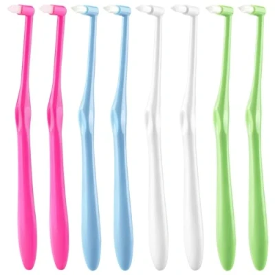 8 PCS 4 COLORS OPTIONAL - You can receive 8 interdental Wisdom Interdental Brushes, 4 colors (white, blue, green, rose red), 2 pcs for each color, easy to distinguish and replace, and can be shared with family and friends. SINGLE TUFTED DESIGN - This tufted Dental Brushes is ultra soft and tufted with a round brush head, which is better access the inaccessible areas of your mouth; The handle is ergonomically designed to provide a comfortable hold and efficient cleaning. MODERATE HARDNESS OF THE BRUSH HEAD - The Interspace Toothbrush bristles have moderate hardness, which is very suitable for cleaning tartar. BETTER CLEANING EFFECTS - Small bristle heads for precision cleaning, can gets at the difficult area behind the tooth, clean the gap between the periodontal and the braces, making sure no food debris are left behind. WIDE APPLICATIONS - These Interdental Toothbrush are suitable for most people, such as people with irregular teeth, people with braces, people with small mouths, the elderly's denture, etc., and also suitable for orthodontic treatment, tooth bifurcations, and implants. The single tuft toothbrush is also suitable for cleaning puppy and cat teeth.