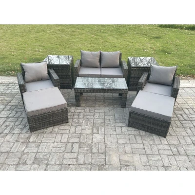 8 pcs Outdoor Lounge Sofa Set Wicker pe Rattan Garden Furniture with Rectangular Coffee Table Armchair 2 Big Footstool Side Tables Dark Grey