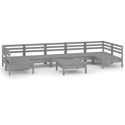 8 Piece Garden Lounge Set Grey Solid Wood Pine Vidaxl