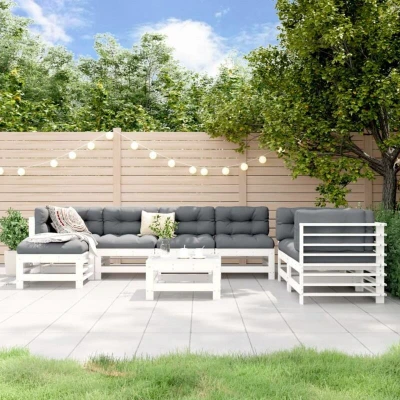 8 Piece Garden Lounge Set White Solid Wood Pine vidaXL