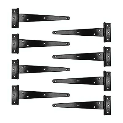 Set of 8 NUAMAS 8 inch Black Finish Tee Hinges Cabinet Shed Door & Gate T Hinge . Zinc-Plating iron for anti-rust and corrosion Offset screw holes for extra strength and to prevent wood from splitting Tight pin allows for right-hand or left-hand applications excellent hinge for hanging cabinet doors, garden gates and outside shed doors. Easy and quick installation, comes with installation screws, Manufacturer: NUZAMAS