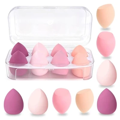 Soft and skin-friendly make-up blender: the make-up sponges are extra soft, gentle on the skin and adapt to any face contour. Ideal for even application of foundation, concealer, BB cream or powder - for a flawless makeup result. Wet and dry application for versatile looks: the beauty sponge sponges can be used both dry and wet. Perfect for powder when dry, when moistened ideal for liquid foundation and concealer. This creates a seamless, natural finish that lasts long and looks professional. 3 SHAPES MAKEUP SPONGES FOR PRECISION - The set includes beauty blender in 3 shapes: round side for foundation, slanted side for larger areas and tip for hard to reach areas such as corners of eyes or nose. Each make-up sponge ensures precise, effortless application and an even complexion. Reusable and easy to clean: the foundation sponges are durable, dimensionally stable and easy to wash out with mild soap or special cleaning solution. After drying, the make-up sponges remain elastic and hygienic, so they can be used multiple times - sustainable and skin-friendly. Set of 8 make-up sponges: this set contains 8 beauty sponge sponges in different shapes for all make-up routines. Perfect for on the go, travel or everyday use. Whether beginners or professionals - with these make-up sponges you can achieve a professional, even result.