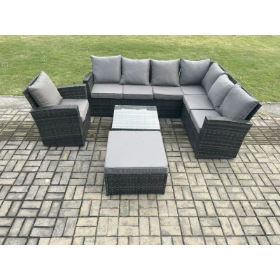 8 Seat Rattan Garden Furniture Corner Sofa Set Outdoor Patio Chair Table with Big Footstool Dark Grey Mixed Fimous