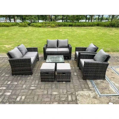 8 Seater Dark Grey Mixed High Back Rattan Sofa Set Square Coffee Table Garden Furniture 2 Chairs Outdoor Patio Stools Fimous