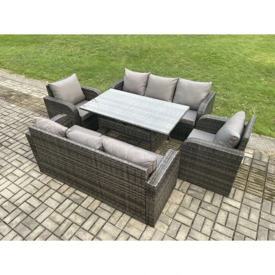 8 Seater Lounge Rattan Sofa Set Outdoor Garden Furniture Oblong Rectangular Dining Table With Adjustable Chair 3 Dark Grey Mixed Fimous