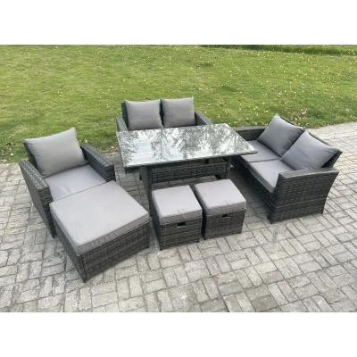 8 Seater Outdoor Garden Dining Set Wicker pe Rattan Furniture Sofa with Rectangular Table Double Seat Dark Grey Mixed Fimous