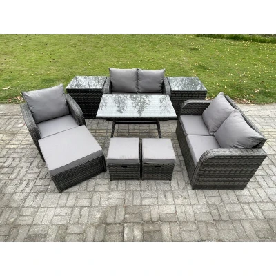 8 Seater Outdoor Garden Dining Sets Rattan Furniture With Table Armchairs Love Sofa 3 Footstools 2 Side Tables Dark Grey Mixed Fimous