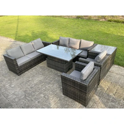 8 Seater Outdoor Rattan Garden Furniture Adjustable Rising Lifting Table Chairs Dark Grey Mixed Fimous