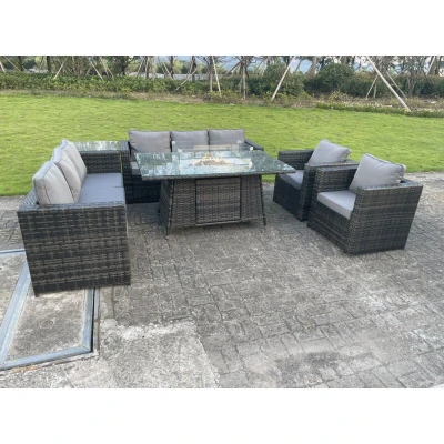8 Seater Outdoor Rattan Garden Furniture Gas Fire Pit Table Sets Heater Lounge Chairs Side Coffee Tea Dark Grey Fimous
