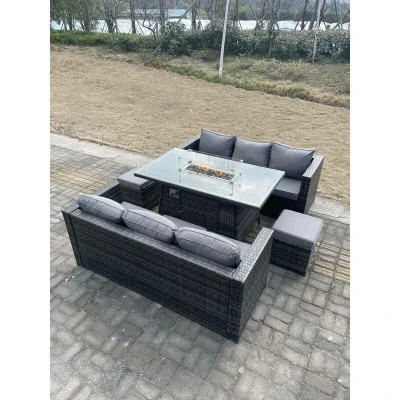 8 Seater Outdoor Rattan Sofa Set Garden Furniture Gas Firepit Heater Dining Table Footstools Dark Grey Mixed Fimous