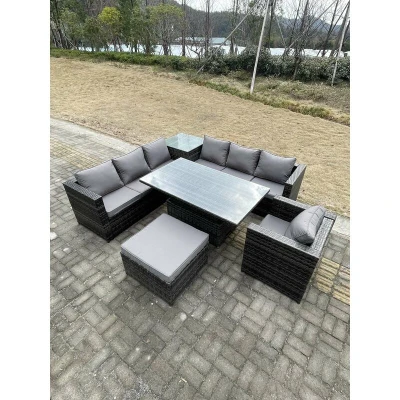 8 Seater pe Rattan Corner Sofa Set Rising Adjustable Dining Table High Side Coffee With Arm Chair Big Footstool Fimous