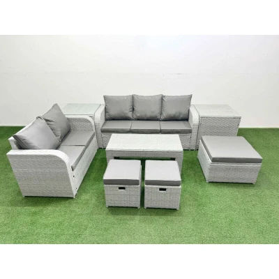 8 Seater pe Rattan Wicker Garden Furniture Patio Conservatory Sofa Set with Oblong Coffee Table 3 Love Stool 2 Side Fimous