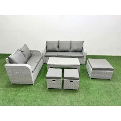 8 Seater pe Rattan Wicker Garden Furniture Patio Conservatory Sofa Set with Oblong Coffee Table 3 Love Stool Fimous