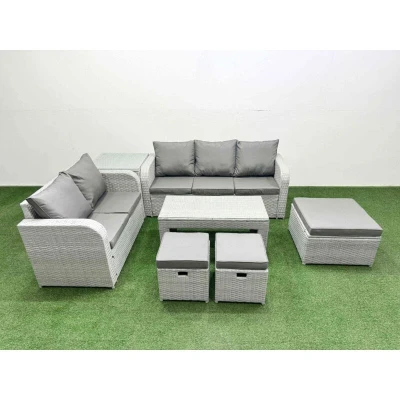 8 Seater pe Rattan Wicker Garden Furniture Patio Conservatory Sofa Set with Oblong Coffee Table 3 Love Stool Side Fimous
