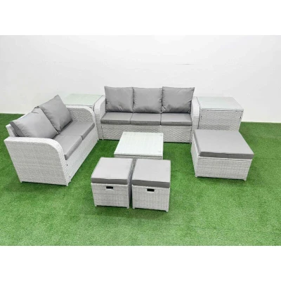 8 Seater pe Rattan Wicker Garden Furniture Patio Conservatory Sofa Set with Square Coffee Table 3 Love Stool 2 Side Fimous