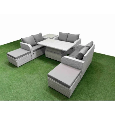 8 Seater pe Wicker Rattan Furniture Sofa Sets with Adjustable Lifting Dining or Coffee Table 2 Love Big Footstool Side Light Grey