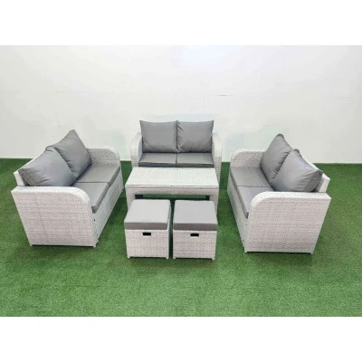 8 Seater pe Wicker Rattan Furniture Sofa Sets with Oblong Coffee Table 2 Love Stool Light Grey Fimous