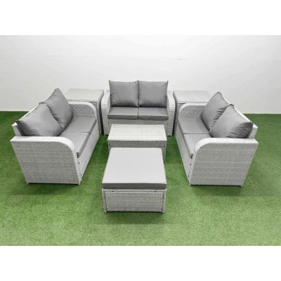 8 Seater pe Wicker Rattan Furniture Sofa Sets with Rectangular Coffee Table 2 Love Stool Light Grey Fimous