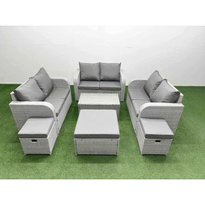 8 Seater pe Wicker Rattan Furniture Sofa Sets with Rectangular Coffee Table 2 Love Stool Side Light Grey Fimous