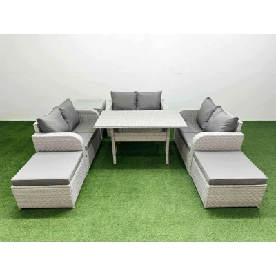 8 Seater pe Wicker Rattan Furniture Sofa Sets with Rectangular Dining Table 2 Love Big Footstool Side Light Grey Fimous