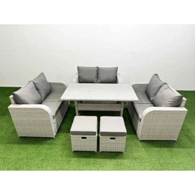 8 Seater pe Wicker Rattan Furniture Sofa Sets with Rectangular Dining Table 2 Love Stool Light Grey Fimous