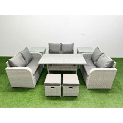 8 Seater pe Wicker Rattan Furniture Sofa Sets with Rectangular Dining Table 2 Love Stool Side Light Grey Fimous
