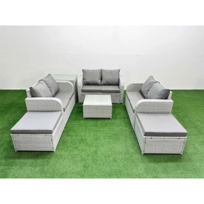 8 Seater pe Wicker Rattan Furniture Sofa Sets with Square Coffee Table 2 Love Big Footstool Side Light Grey Fimous