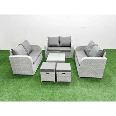 8 Seater pe Wicker Rattan Furniture Sofa Sets with Square Coffee Table 2 Love Stool Light Grey Fimous