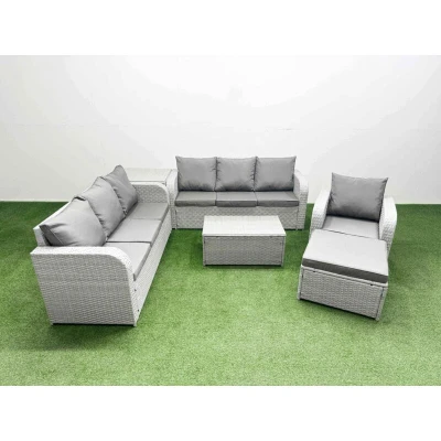 8 Seater Poly Rattan Outdoor Garden Furniture Sofa Set Patio 3 Reclining Chair Big Footstool Side Table Light Grey Fimous