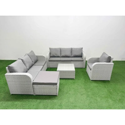 8 Seater Poly Rattan Outdoor Garden Furniture Square Coffee Table Sofa Set Patio 3 Reclining Chair Big Footstool Light Grey