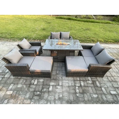 8 Seater Rattan Garden Furniture Set Outdoor Lounge Sofa Chair Gas Fire Pit Dining Table With 2 Big Footstool Double Seat Armchiar Fimous