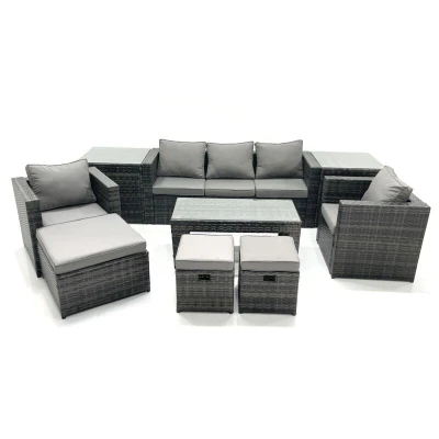 8 Seater Rattan Garden Furniture Set Outdoor Lounger Sofa with Coffee Table 2 Armchair 3 Footstools Side Tables Dark Grey Mixed Fimous