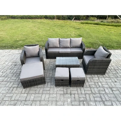 8 Seater Rattan Garden Furniture Set Patio Outdoor Lounge Sofa with Rectangular Coffee Table 3 Footstools Dark Grey Mixed Fimous