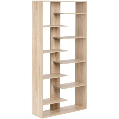 8 Tier Bookcase Shelves Particle Board Open Back Minimalist Design Light Brown Fontas