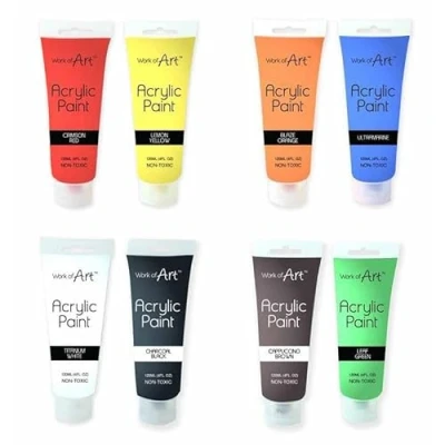 8 X 120ML TUBES OF ACRYLIC PAINT PAINTS NON TOXIC SET OF8 ASSORTED COLOUR