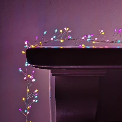General description Illuminate your indoor or outdoor space this Christmas with this decorative cluster light set. The 800 LED lights are clustered on a silver pin wire, allowing for flexible positioning to suit your decor needs. Mains powered and multifunctional, these lights offer various sequences that can be easily changed with the press of a button on the transformer. The transformer also features a timer function, activating 8 hours on and 16 hours off, indicated by a green light when active. Energy-efficient LEDs provide a cost-effective lighting solution compared to traditional halogen bulbs. Technical specifications Number of LEDs: 800 Length: 5.5m Lead length from transformer to first bulb: 8m Light color: Rainbow Power source: Mains powered IP rating: IP20 Usage Available functions include static, combination, in waves, sequential, slow glow, chasing/flash, slow fade, and twinkle/flash, providing a variety of lighting effects to enhance your festive atmosphere.