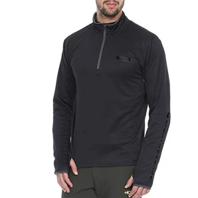 Second layer half-zip garment in stretch fabric with inner fleece finish. Zipped side pockets; inner flap with top finish to protect the chin Tight cuffs and hems with vivid elastic; thumb hole on sleeves Large logo on right sleeve Activity: Trekkking/Hiking/Ski