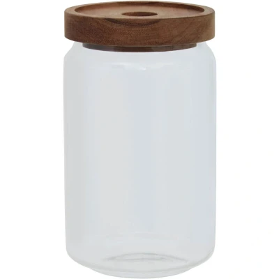 800ml Round Clear Glass Jar With Acacia Wood Lid For Storage Multipurpose Stylish Lightweight Removable w9 x d9 h16cm Premier Housewares