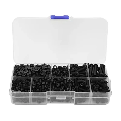 800pcs/box M3 Nylon Screw Nut Washer Combination Kit Flat Head Socket Cap Screws Countersunk Set Black Laptop Micro Assorted Fasteners Hardware Accessories with Plastic Box(Black)