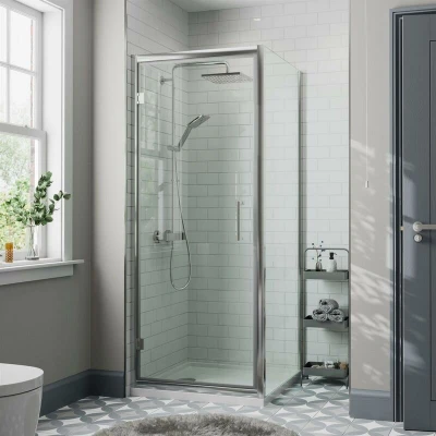 General description Transform your daily shower routine into a luxurious escape with our Diamond hinged shower enclosure. Crafted with precision and functionality in mind, this enclosure combines sleek design with practicality to elevate your bathroom space. Featuring a hinged door that effortlessly swings open, you can step into your shower enclosure with ease. Designed for larger bathrooms, hinged doors provide maximum accessibility while maintaining a designer-level luxury and polished style. Technical specifications Enclosure Width: 800mm Enclosure Height: 1950mm Enclosure Depth: 800mm Glass Thickness: 8mm Frame Style: Framed Frame Colour: Chrome Tray Type: Low Profile Easy-clean Glass: Yes Reversible Door: Yes Glass Effect: Clear Installation Type: Corner Fixing (2 solid walls / 2 glass panels) Side Panel: 800mm Weight: 60% lighter than stone resin trays High-Flow Waste Rate: 32 litres per minute Standard Connection: 40mm Compatibility and accessories Includes: 1x Diamond Hinged