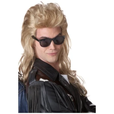 Size: Standard Made of synthetic fibers Blonde hair shaped into a rockin' mullet Elastic mesh interior