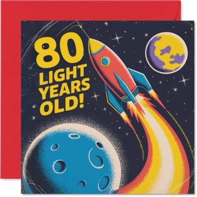 80th Birthday Cards for Men Women Light Years Old Happy Card 80 Year Man Woman Auntie Dad Grandad Nan, 145mm Bday Greeting
