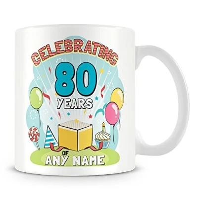 80th Birthday Gift for Men Personalised Mug/Cup Add Name Celebration Blue
