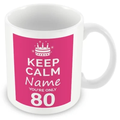 80th Birthday Gift for Women Personalised Mug/Cup Add Name Keep Calm Design Pink