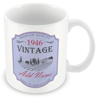 80th Birthday Gift Vintage 1944 Personalised Wine Mug/Cup Add Name Blue
