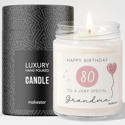 80th Birthday Gifts for Grandma Soy Wax Vanilla, Jasmine, Sugared Almond Makester