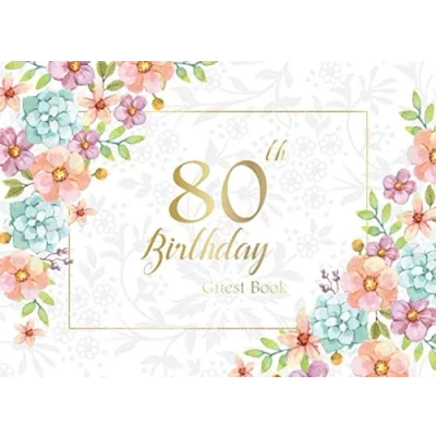 80th Birthday Guest Book: Watercolor Flowers Frame Keepsake Memory Book Message Anniversary Write in & Well Wishes Celebrating Sign ... (Celebrating 80 Year Happy Book)