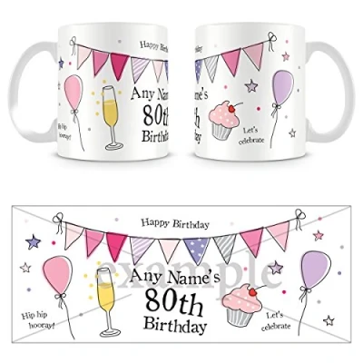 80th Birthday Present for Women Personalised Mug/Cup Add Name Party Design Pink